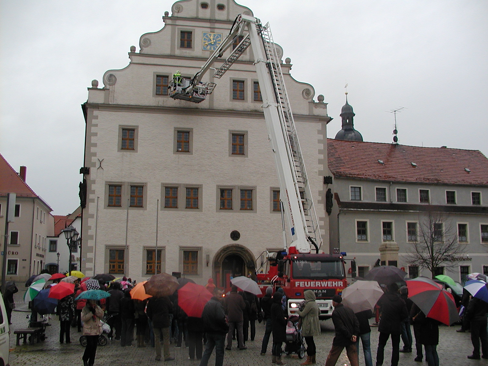 [...] Bei der Übergabe der Rathausschlüssel an den Faschingsverein am 11. November machte es der Bürgermeister den Narren besonders schwer. Er legte den Schlüssel auf ein Fensterbrett im dritten Stock und verkündete, dass aufgrund des Sonntags das Rathaus abgeschlossen bleibt. Damit animierte er den Faschingsverein direkt, die Feuerwehr mit ihrem Hubsteiger zu Hilfe zu holen. Die StattZeitung berichtete. [...]